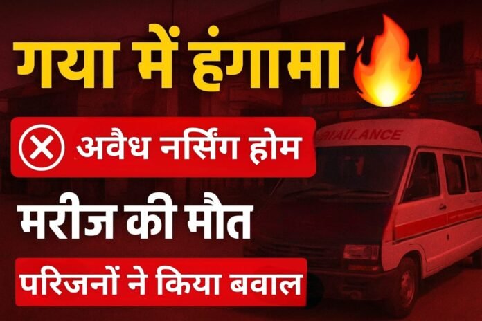 बिहार, गया: जिले के गुरुआ प्रखंड मुख्यालय स्थित एक नर्सिंग होम में बीते रात इलाज के दौरान मरीज की मौत के बाद परिजन और ग्रामीण उग्र हो गए। गुस्साई भीड़ ने न सिर्फ नर्सिंग होम में जमकर तोड़फोड़ की बल्कि वहां मौजूद डॉक्टर की पिटाई भी कर दी। इस दौरान आक्रोशित लोगों ने शुक्रवार को सड़क जाम कर घंटों तक हंगामा किया।