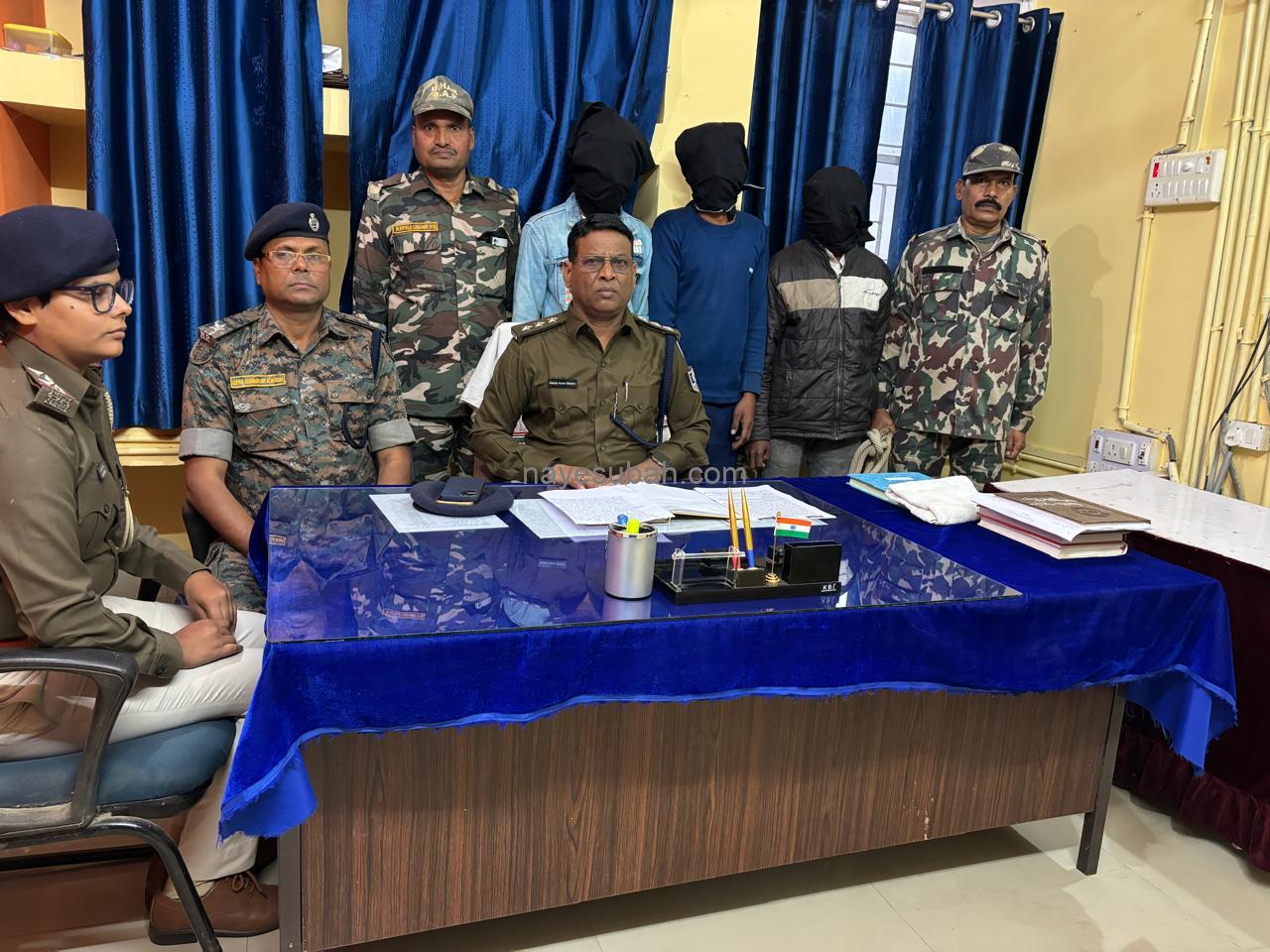 कौआकोल पुलिस ने छापेमारी कर निम्नलिखित तीन अभियुक्तों को गिरफ्तार किया— 1. सचिन कुमार, 20 वर्ष (पिता—राजू सिंह), 2. सियाराम कुमार, 19 वर्ष (पिता—रामवृक्ष यादव), 3. नीतीश कुमार, 18 वर्ष (पिता—दिनेश यादव) तीनों बिंदीचक गांव, थाना कौआकोल के निवासी हैं।