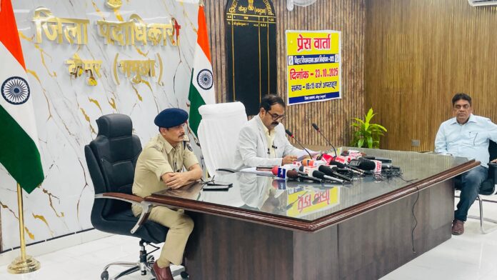 Bihar, कैमूर: जिला निर्वाचन पदाधिकारी-सह-जिला पदाधिकारी श्री सुनील कुमार एवं पुलिस अधीक्षक श्री हरि मोहन शुक्ला ने संयुक्त रूप से समाहरणालय परिसर स्थित कार्यालय कक्ष में शुक्रवार को प्रेस वार्ता कर आगामी बिहार विधानसभा आम निर्वाचन 2025 को लेकर विस्तृत जानकारी दी।