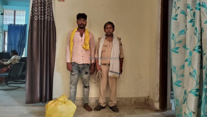 सूचना के आधार पर पुलिस ने नगर पंचायत हाटा के खरिगांवा मार्ग स्थित तिवई जाने वाले तीनमुहाने के पास ईंट भट्ठा के समीप घेराबंदी कर जांच शुरू की। जैसे ही पुलिस ने बाइक सवार युवकों को रोकने की कोशिश की, दोनों भागने लगे। पुलिस बल ने पीछा कर एक युवक को पकड़ लिया, जबकि उसका साथी मौके का फायदा उठाकर फरार हो गया।तलाशी के दौरान बिना नंबर प्लेट की मोटरसाइकिल पर रखी पीले रंग की बोरी से 90 पीस ब्लू लाइम शराब का टेट्रा पैक (प्रत्येक 200 एमएल) बरामद किया गया। पूछताछ में गिरफ्तार युवक ने अपना नाम विनोद कुमार, पिता रामेश्वर बिंद, निवासी ग्राम डुमरिया, थाना चैनपुर बताया।