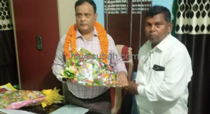 Bihar: कैमूर जिले के चैनपुर प्रखंड अंचल कार्यालय में सोमवार की दोपहर नव पदस्थापित अंचल अधिकारी (सीओ) अनिल प्रसाद सिंह ने पदभार ग्रहण किया। इस अवसर पर प्रभारी सीओ बब्बन पाल ने उन्हें फूलों का गुलदस्ता देकर स्वागत किया।