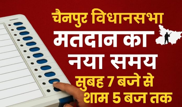 नई व्यवस्था के तहत चैनपुर विधानसभा क्षेत्र में मतदान अब सुबह 7:00 बजे से शाम 5:00 बजे तक संपन्न कराया जाएगा।
