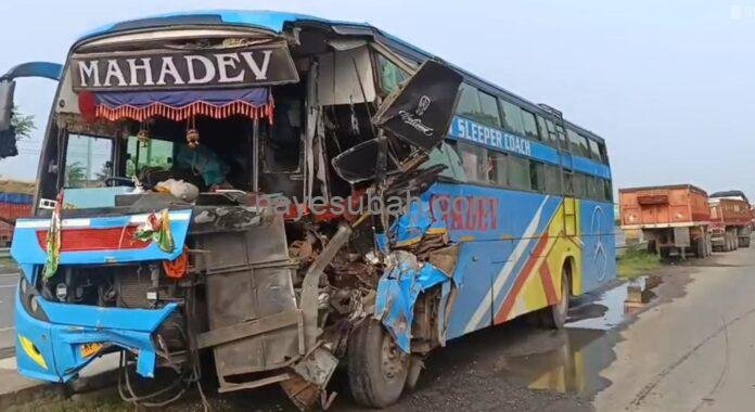 दुर्गावती में बस और ट्रक की भिड़ंत, एक की मौत, 10 घायल, काशी से गया पितृपक्ष में शामिल होने जा रहे थे यात्री