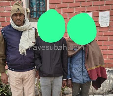 इसी दौरान सिरबीट गांव से लगभग 300 मीटर उत्तर दिशा में स्थित पुरानी पोखरा के पास दो युवक बाइक पर सवार दिखे। पुलिस को देखकर दोनों भागने लगे, लेकिन पुलिस बल ने तत्परता दिखाते हुए दोनों को पकड़ लिया।