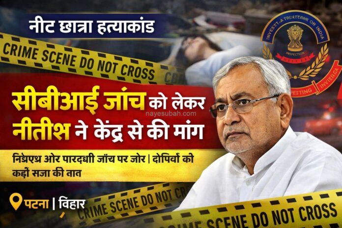 Bihar, पटना: राजधानी पटना में नीट की तैयारी कर रही छात्रा की निर्मम हत्या के मामले ने पूरे राज्य को झकझोर कर रख दिया है। इस जघन्य हत्याकांड को लेकर अब जांच को केंद्रीय जांच ब्यूरो (सीबीआई) को सौंपने की मांग तेज हो गई है। मुख्यमंत्री नीतीश कुमार ने स्वयं इस मामले में हस्तक्षेप करते हुए भारत सरकार से सीबीआई जांच कराने का औपचारिक अनुरोध किया है। यह मामला कांड संख्या 14/26 के तहत दर्ज है।