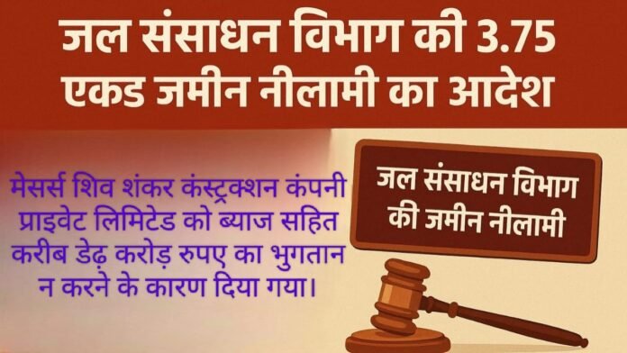 Bihar, कैमूर (मोहनियां): कैमूर जिले के मोहनियां में न्यायालय ने जल संसाधन विभाग की 3.75 एकड़ भूमि (जिसमें विभाग का कार्यालय भी शामिल है) की नीलामी का आदेश जारी किया है। यह आदेश विभाग द्वारा मेसर्स शिव शंकर कंस्ट्रक्शन कंपनी प्राइवेट लिमिटेड को ब्याज सहित करीब डेढ़ करोड़ रुपए का भुगतान न करने के कारण दिया गया।
