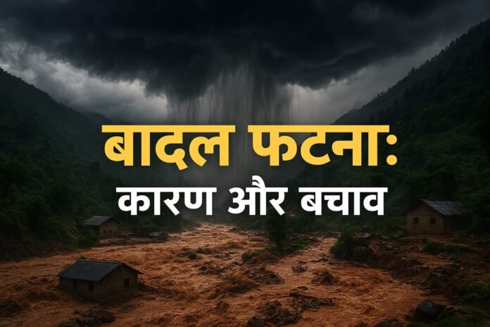 बादल फटना एक अत्यधिक वर्षा की चरम स्थिति है, जब किसी सीमित क्षेत्र में बहुत ही कम समय में 100 मिमी से अधिक बारिश हो जाती है। यह अक्सर पहाड़ी इलाकों में होता है क्योंकि वहां नमी से भरे बादल पर्वतों से टकराकर अचानक फट जाते हैं।