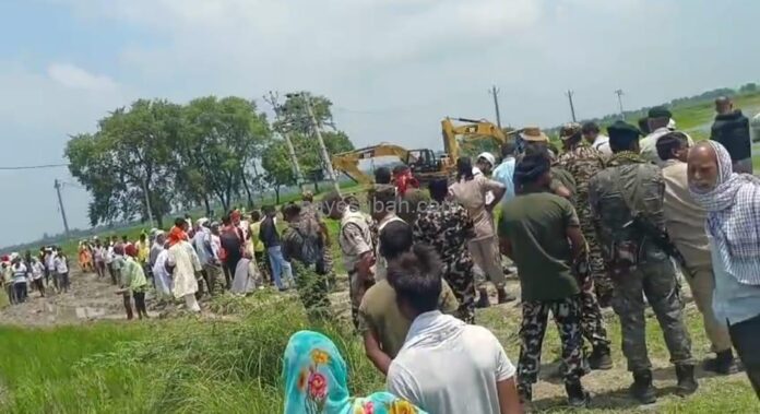 उन्होंने बताया कि मंगलवार को प्रशासन ने लगभग 50 एकड़ में लगी धान की फसल को जेसीबी से रौंद दिया। किसानों के अनुसार न तो उन्हें मुआवजा दिया गया है और न ही उनकी सहमति ली गई। ऐसी स्थिति में किसानों के सामने “करो या मरो” की परिस्थिति उत्पन्न हो गई है।