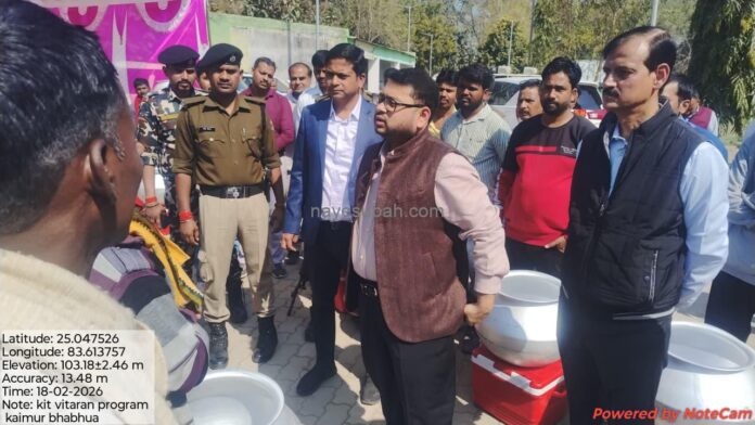 बिहार, कैमूर: जिले में मत्स्य पालन और मछली विपणन को बढ़ावा देने के उद्देश्य से बुधवार (18 फरवरी 2026) को पूर्वाह्न 10:30 बजे जिला मुख्यालय में किट वितरण कार्यक्रम आयोजित किया गया। कार्यक्रम का आयोजन जिला मत्स्य कार्यालय द्वारा किया गया, जिसमें जिला पदाधिकारी ने ‘मुख्यमंत्री मछुआ कल्याण योजना’ के अंतर्गत 30 चयनित लाभार्थियों को शिकारमाही एवं विपणन किट निःशुल्क प्रदान किए।