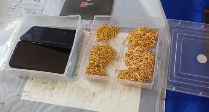 Bihar, जमुई: पुलिस ने एक बड़ी सफलता हासिल करते हुए 550.49 ग्राम सोना और दो मोबाइल फोन के साथ पिता-पुत्र को गिरफ्तार किया है। गिरफ्तार आरोपियों की पहचान नगर थाना क्षेत्र के नीमारंग निवासी रंजीत दास और उसके पुत्र पीयूष दास के रूप में हुई है। यह कार्रवाई मलयपुर थाना परिसर में आयोजित प्रेस वार्ता के दौरान पुलिस अधीक्षक विश्वजीत दयाल ने सार्वजनिक की।