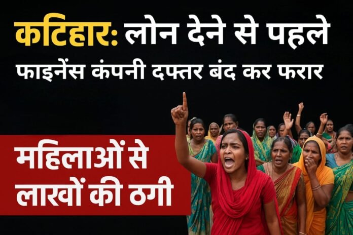 Bihar: कटिहार शहर में एक फाइनेंस कंपनी ने लोन देने का झांसा देकर दर्जनों महिलाओं से लाखों रुपये की ठगी कर ली। तय तिथि पर जब महिलाएं लोन की राशि लेने सिरसा स्थित कंपनी कार्यालय पहुंचीं तो दफ्तर बंद मिला और कंपनी के कर्मचारी फरार पाए गए। घटना की जानकारी मिलते ही गुस्साई महिलाओं ने जमकर हंगामा किया और कार्यालय में तोड़फोड़ की। सूचना पाकर पुलिस मौके पर पहुंची और स्थिति को काबू में किया।