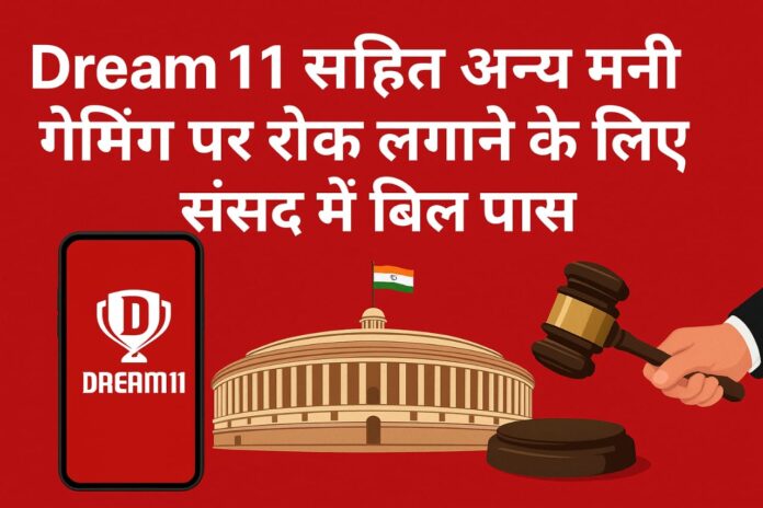 Desk, नई दिल्ली: “ऑनलाइन मनी गेमिंग के दलदल में फंसते युवाओं को बाहर निकालने के लिए सरकार ने बड़ा कदम उठाया है। संसद ने Dream11 सहित अन्य मनी गेमिंग प्लेटफॉर्म्स पर रोक लगाने के लिए अहम बिल पास कर दिया है। इस फैसले को युवाओं के भविष्य और समाज की सुरक्षा की दिशा में ऐतिहासिक कदम माना जा रहा है।”